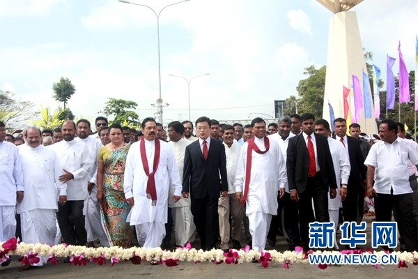 斯總統(tǒng)拉賈帕克薩為科倫坡國際機(jī)場高速路開通儀式揭幕(圖片摘自新華網(wǎng))